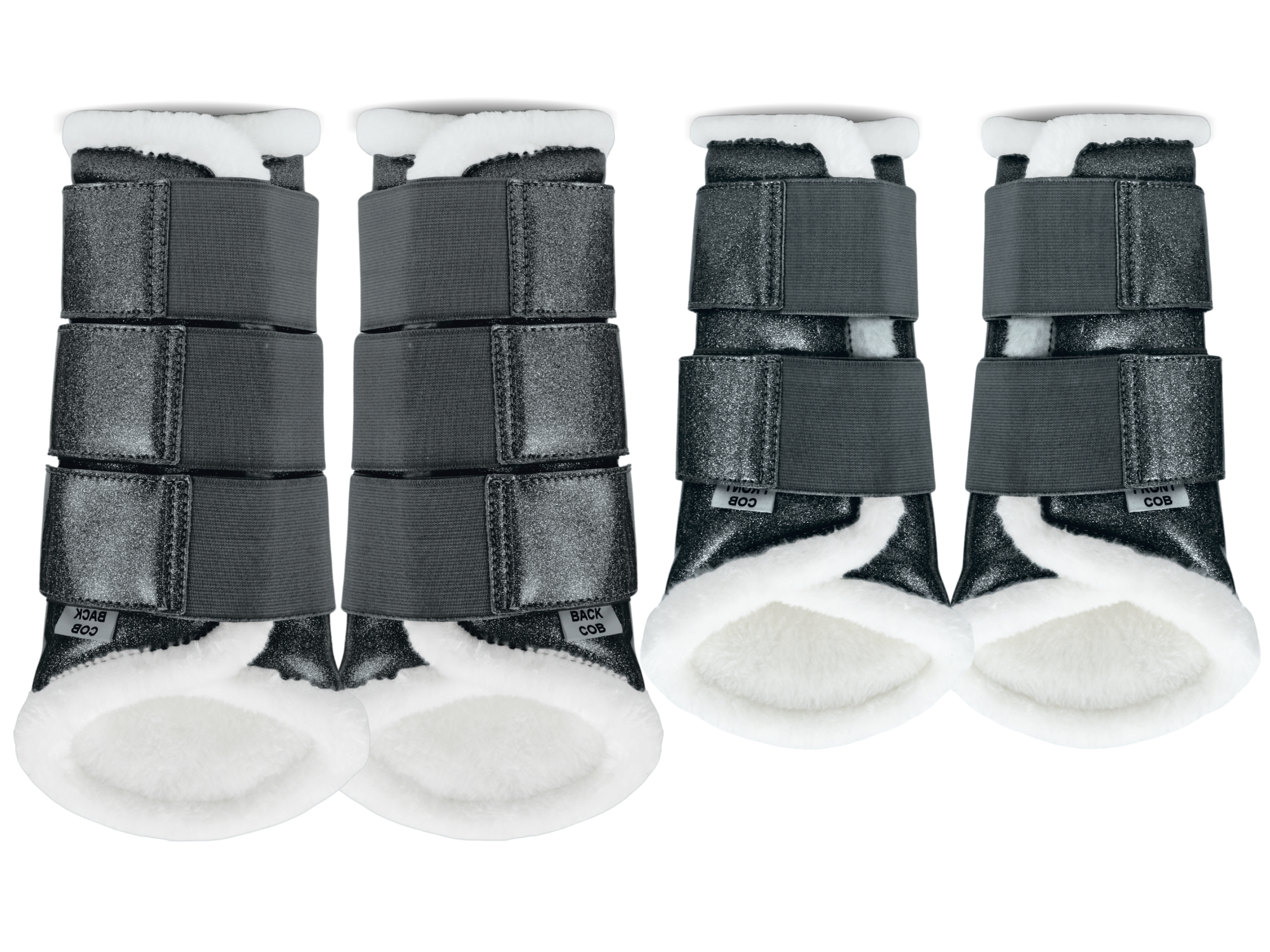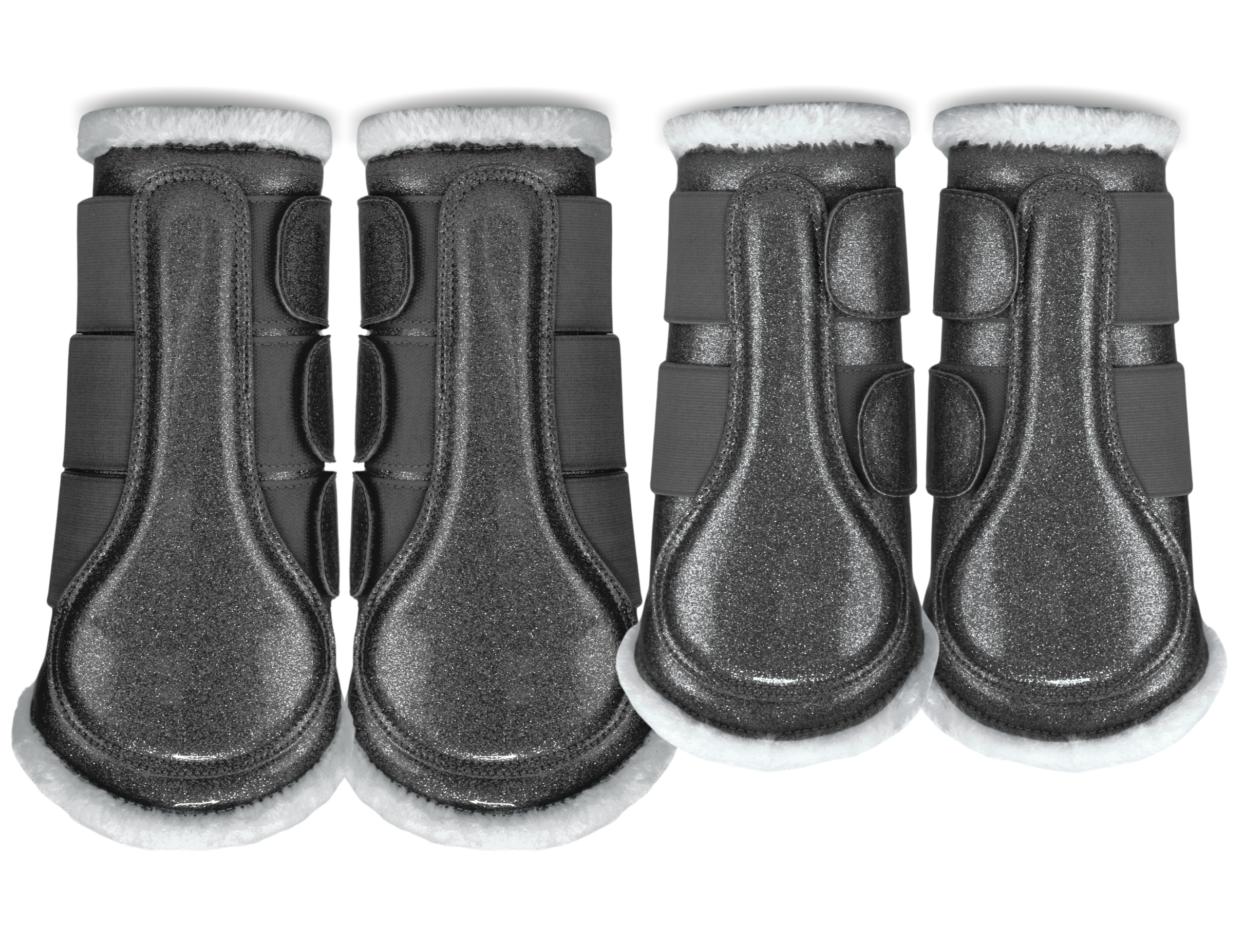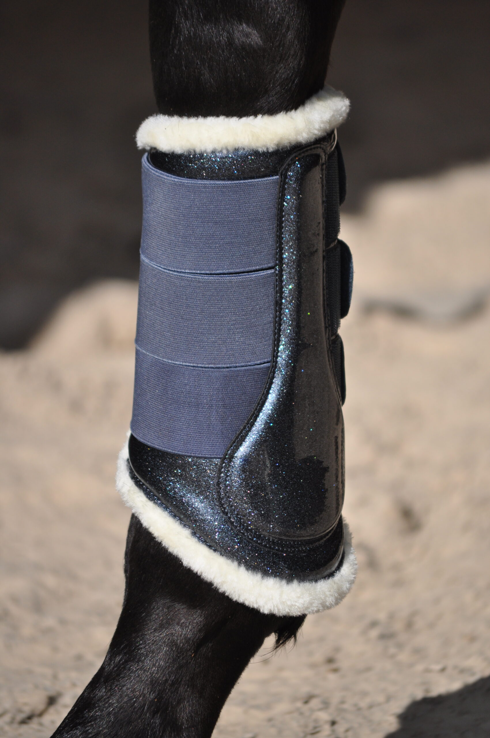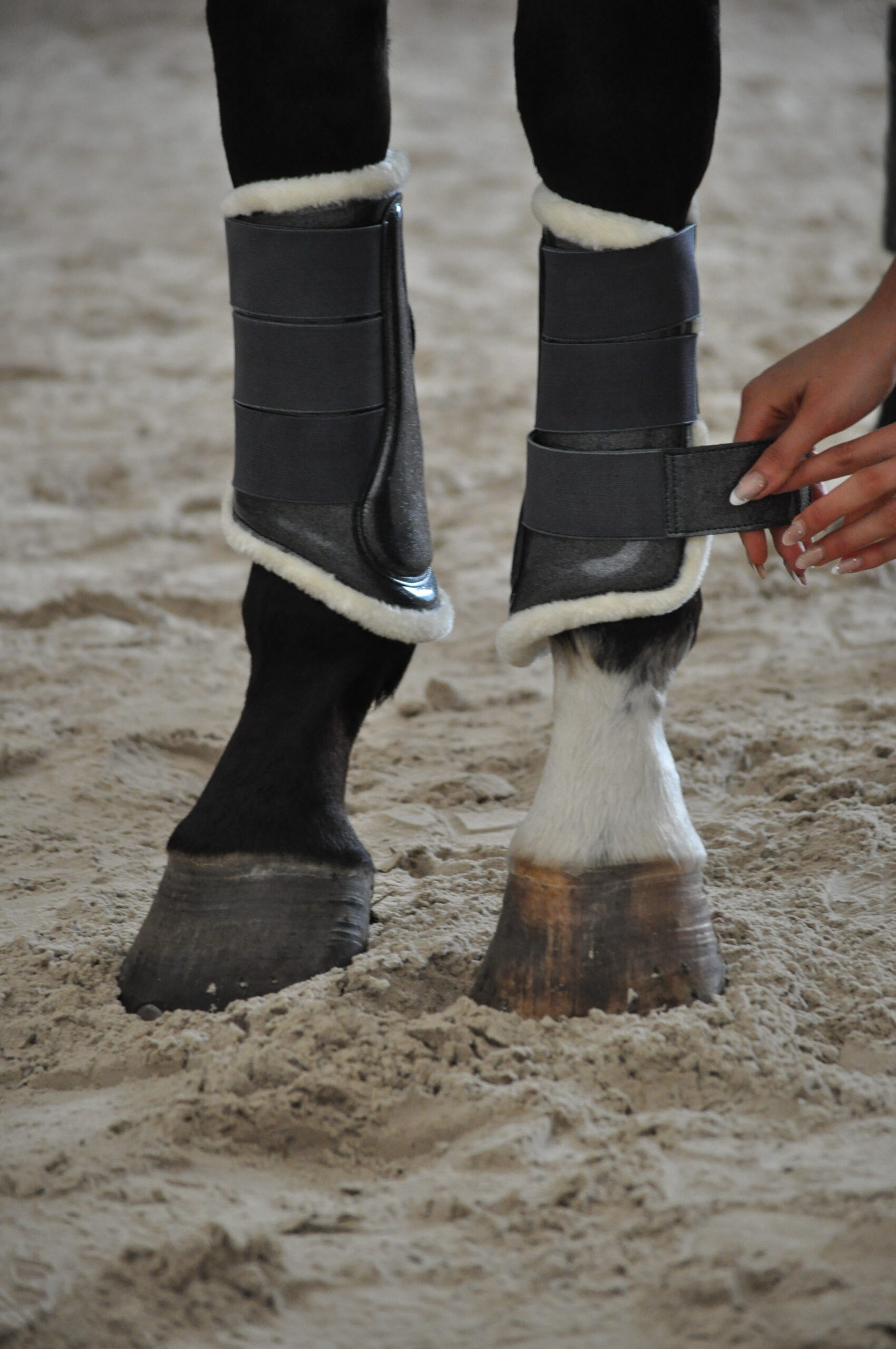 Futerkowe podszycie wewnątrz ochraniaczy gwarantuje komfort i ochronę kończyn konia przed urazami podczas treningu.